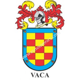 Llavero heráldico - VACA - Personalizado con apellido, escudo de la familia y breve descripción del origen genealógico.