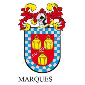 Llavero heráldico - MARQUES - Personalizado con apellido, escudo de la familia y breve descripción del origen genealógico.