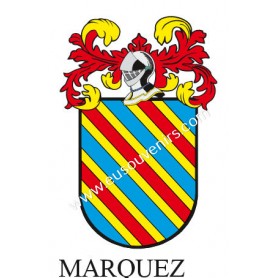 Llavero heráldico - MARQUEZ - Personalizado con apellido, escudo de la familia y breve descripción del origen genealógico.