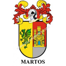 Llavero heráldico - MARTOS - Personalizado con apellido, escudo de la familia y breve descripción del origen genealógico.