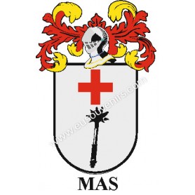 Llavero heráldico - MAS - Personalizado con apellido, escudo de la familia y breve descripción del origen genealógico.