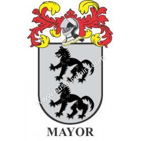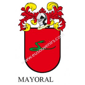 Llavero heráldico - MAYORAL - Personalizado con apellido, escudo de la familia y breve descripción del origen genealógico.