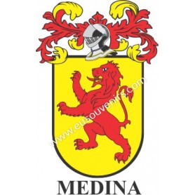 Llavero heráldico - MEDINA - Personalizado con apellido, escudo de la familia y breve descripción del origen genealógico.
