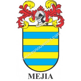 Llavero heráldico - MEJIA - Personalizado con apellido, escudo de la familia y breve descripción del origen genealógico.