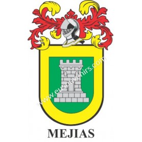 Llavero heráldico - MEJIAS - Personalizado con apellido, escudo de la familia y breve descripción del origen genealógico.