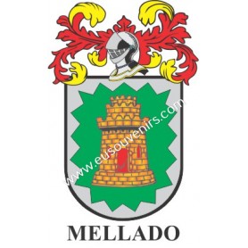 Llavero heráldico - MELLADO - Personalizado con apellido, escudo de la familia y breve descripción del origen genealógico.