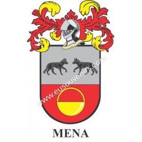 Llavero heráldico - MENA - Personalizado con apellido, escudo de la familia y breve descripción del origen genealógico.