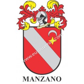 Llavero heráldico - MANZANO - Personalizado con apellido, escudo de la familia y breve descripción del origen genealógico.