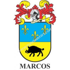 Llavero heráldico - MARCOS - Personalizado con apellido, escudo de la familia y breve descripción del origen genealógico.
