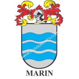 Llavero heráldico - MARIN - Personalizado con apellido, escudo de la familia y breve descripción del origen genealógico.