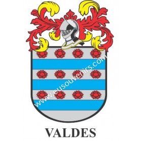Porte-clés héraldique - VALDES - Personnalisé avec le nom, l'écusson de la famille et une brève description de l'origine généalo