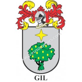 Porte-clés héraldique - GIL - Personnalisé avec le nom, l'écusson de la famille et une brève description de l'origine généalogiq