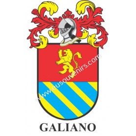 Porte-clés héraldique - GALIANO - Personnalisé avec le nom, l'écusson de la famille et une brève description de l'origine généal