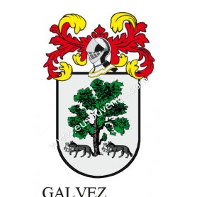 Porte-clés héraldique - GALVEZ - Personnalisé avec le nom, l'écusson de la famille et une brève description de l'origine généalo