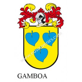 Porte-clés héraldique - GAMBOA - Personnalisé avec le nom, l'écusson de la famille et une brève description de l'origine généalo