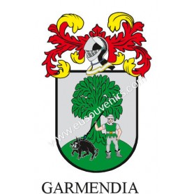 Porte-clés héraldique - GARMENDIA - Personnalisé avec le nom, l'écusson de la famille et une brève description de l'origine géné